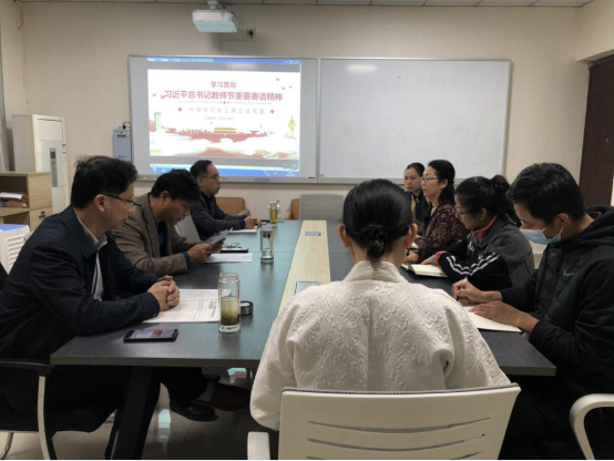 党支部副书记范少华认为习近平总书记的教师节寄语高瞻远瞩,具有高度的总结性和鲜明的时代性,应该紧密结合教学实践和实际贯彻学习。会议最后要求每位党员同志从自己的教育教学实际出发,撰写一篇心得体会,将学习活动推向高潮。